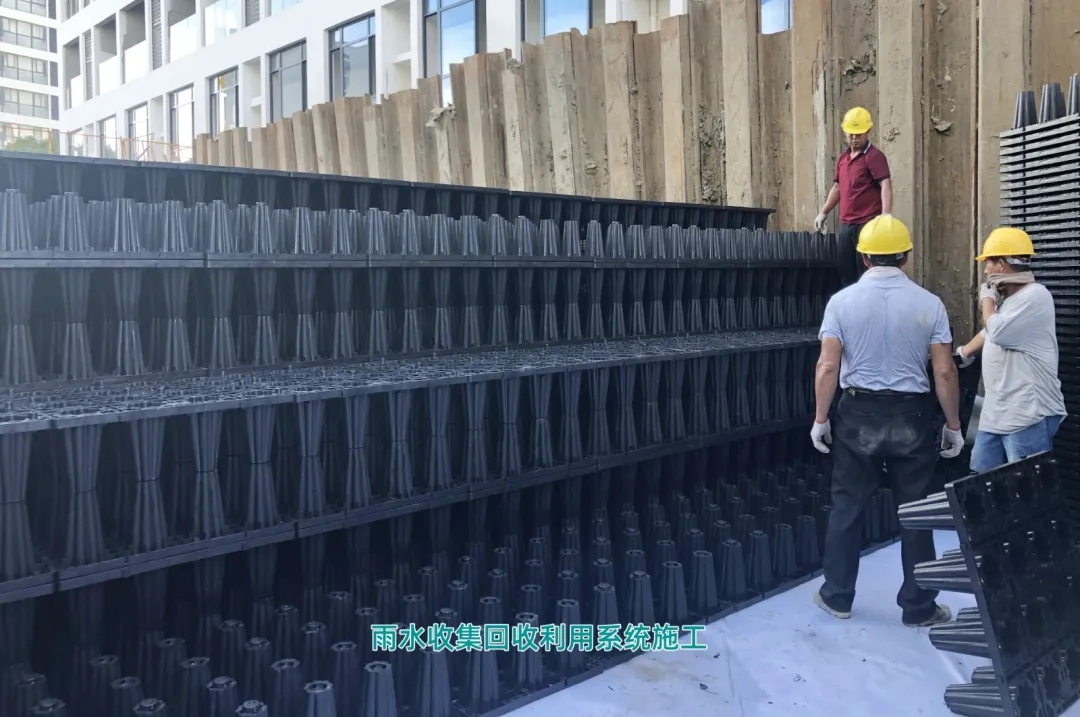 让城市会呼吸,让生活更宜居,该项目积极推进“海绵城市”建设,充分把握“渗、蓄、净、用”的建设要点,加大雨水渗透量、蓄水能力,减少地表径流和对路面的冲刷,从而达到调蓄和错峰,小雨不积水,大雨不内涝,并充分利用雨水资源。(1)校区内新建道路3纵4横、外围道路,路面全部采用透水沥青混凝土;(2)教学楼与实验楼区间、宿舍楼与教工公寓楼内庭、宿舍楼南广场全部铺装透水砖;停车场铺装植草砖;(3)新建雨水收集回用系统:蓄水池384m3,清水池38.4m3,设计处理量20m3/h。雨水立管出户就近接入雨水收集检查井,经雨水预处理系统,接入蓄水池,再经雨水深度净化系统净化后储存于清水池中,用于绿化灌溉、道路冲洗等。