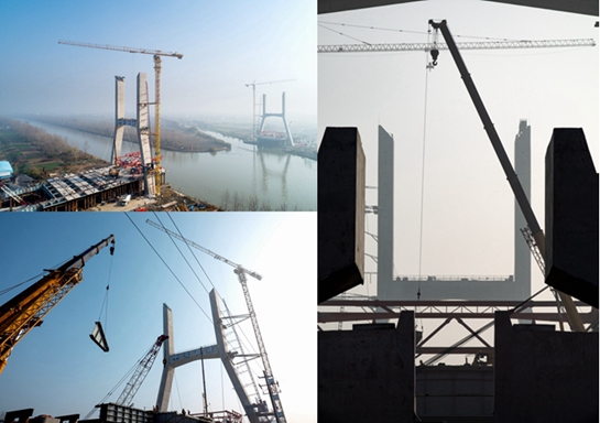 东台市海陵路南延至610省道-海陵大桥工程连续跨越泰东河三级航道和串场河五级航道,海陵大桥为特大型桥梁工程,全长720m,宽40.5m,主跨270m,引桥长210m,跨径布置为30m×3+120m+270m+120m+30m×4,采用预应力混凝土连续箱梁结构,拉索区为两侧各1.2m,全宽为42.9m,主桥采用双塔双索面斜拉结构形式。