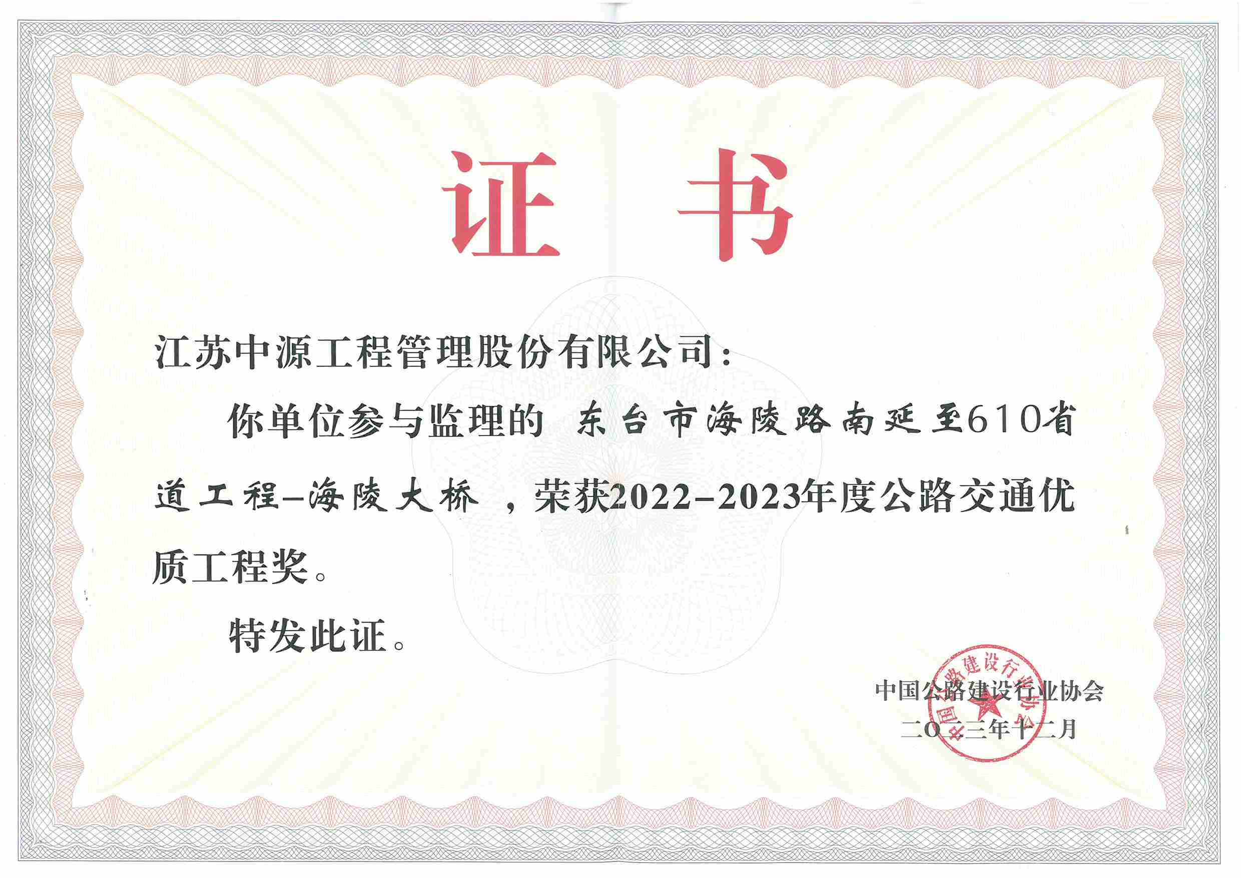 海陵大桥建设需近50万吨混凝土、超过7300吨钢筋、300多吨钢绞线、700多吨斜拉索、近7300吨钢梁、多达25万套螺栓,自重达2万多吨。海陵大桥工程建设历经两年半时间,斗严寒,战酷暑,本着保安全、保质量、保环保、保进度的目标,各方精心组织精心策划,攻克多项技术难题,圆满完成了各项建设任务。该工程荣获江苏省交通工程质量的最高荣誉“苏畅杯”、江苏省建筑工程质量最高荣誉奖“扬子杯”、国家公路交通优质工程奖(李春奖)。